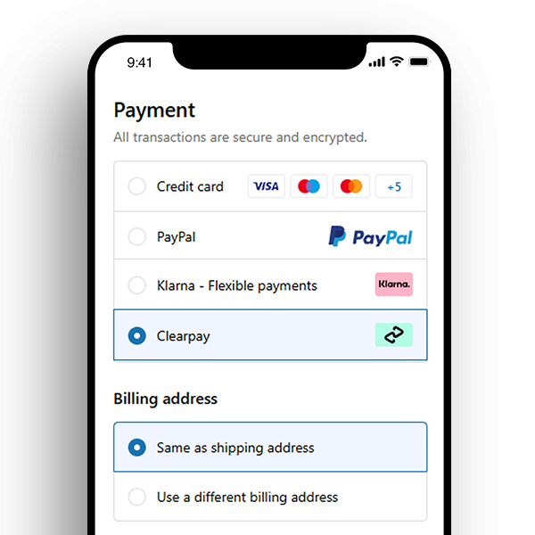 Make your first of four payments when you place your order and Clearpay will automatically take the rest every 2 weeks!